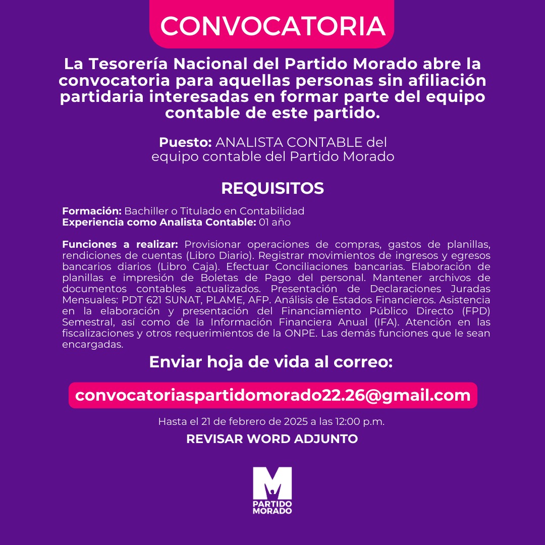 | Nº | Cargo | Nombres y Apellidos | DNI |
